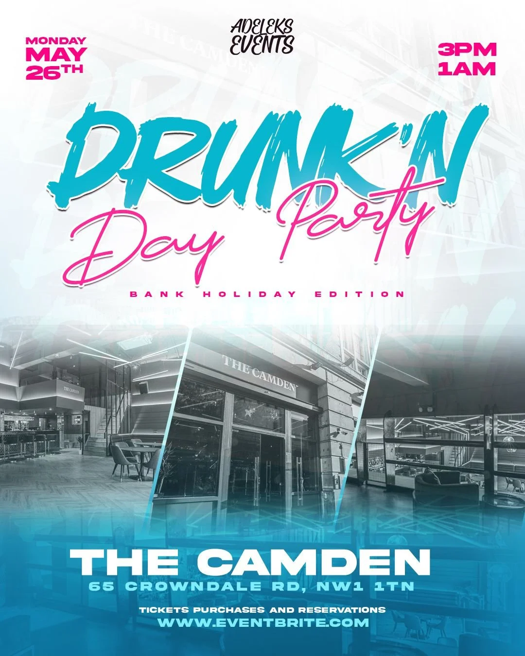 Adeleks Events invites you to Drunk’n Day Party – Bank Holiday Edition, taking place on Bank Holiday Monday, May 26th at the stylish Camden venue in the heart of London.